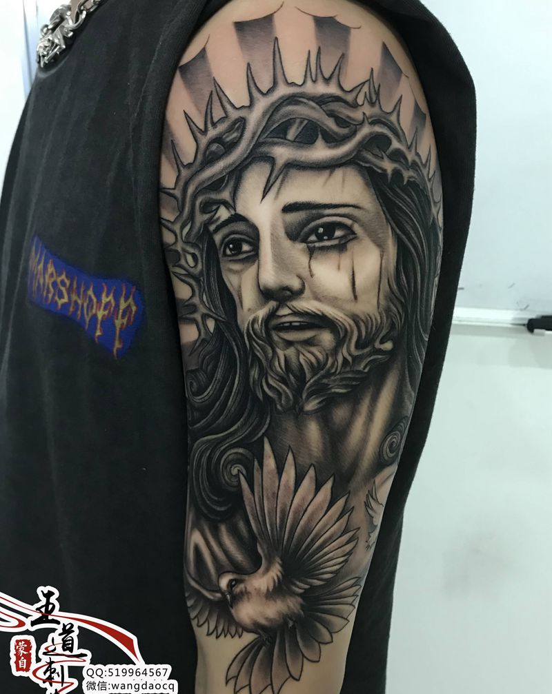 耶稣纹身图片_手部手臂欧美写实新传统耶稣圣母欧美纹身图案