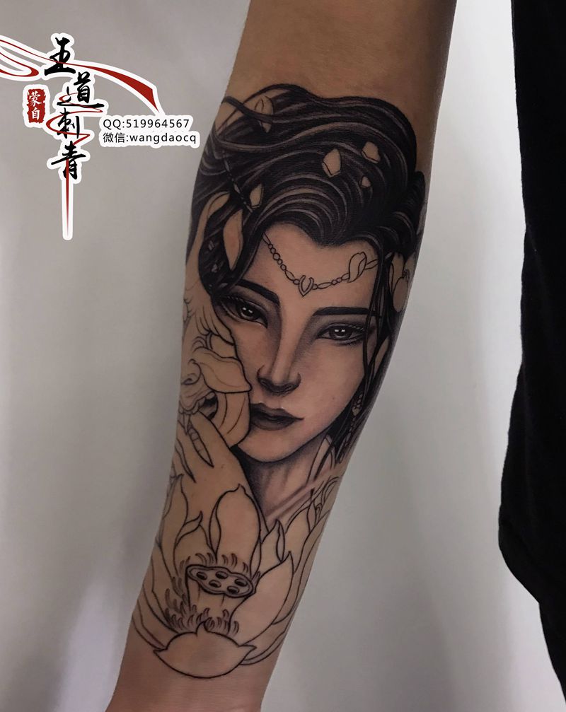 当前位置: 首页 >云南省红河哈尼族彝族自治州纹身店-蒙自王道刺青纹身图案>艺伎纹身图片_手臂手部新传统欧美写实艺妓花臂纹身图案