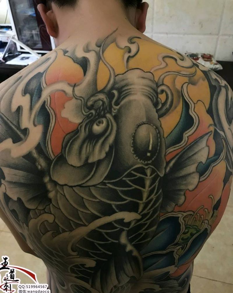 当前位置: 首页 >云南省红河哈尼族彝族自治州纹身店-蒙自王道刺青纹身图案>满背鱼纹身图片_背部新传统欧美写实满背鱼花臂纹身图案