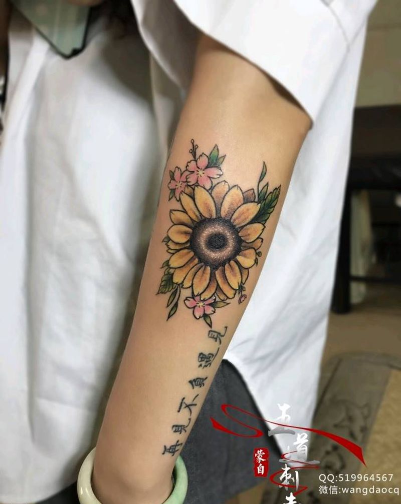 向日葵纹身图片_手部手臂水彩New School向日葵花葵花纹身图案