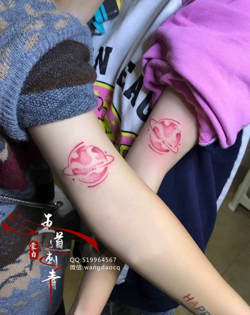 闺蜜纹身纹身图片_手部手臂水彩水墨星球闺蜜情侣纹身图案