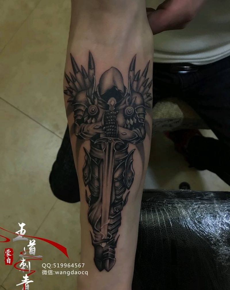 天使纹身图片_手部手臂新传统欧美写实天使翅膀武士纹身图案