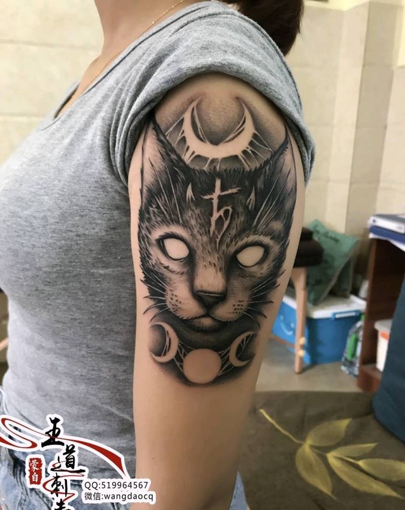 猫纹身图片_手臂手部欧美写实New School猫花臂小清新纹身图案