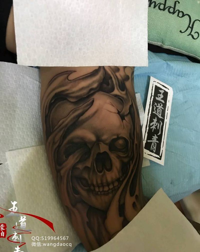 当前位置: 首页 >云南省红河哈尼族彝族自治州纹身店-蒙自王道刺青纹身图案>骷髅纹身图片_手臂手部欧美写实新传统骷髅3D写实纹身图案