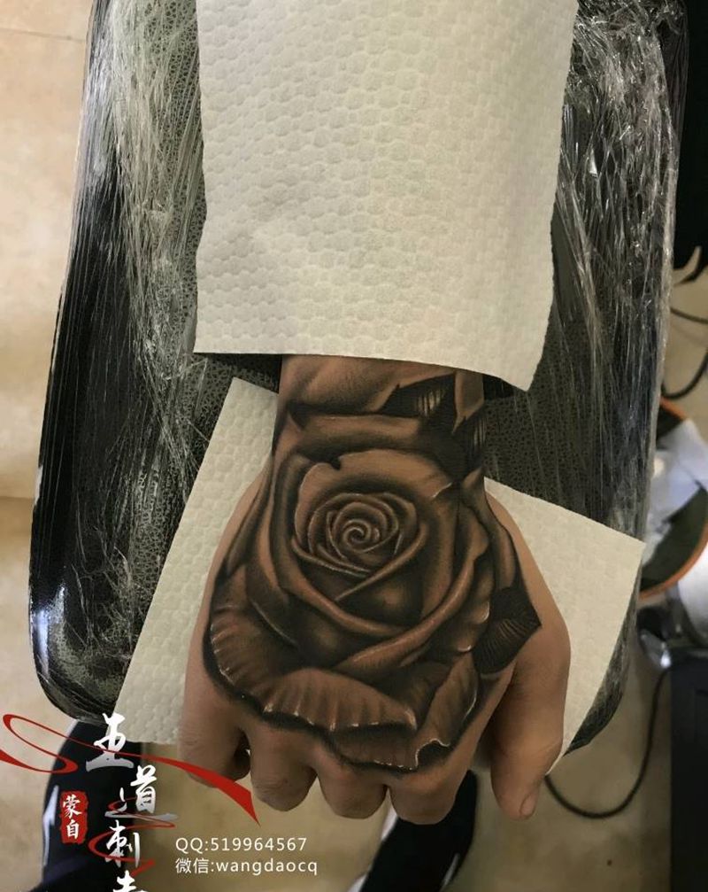 玫瑰纹身图片_手臂手部欧美写实新传统手背玫瑰花花臂纹身图案