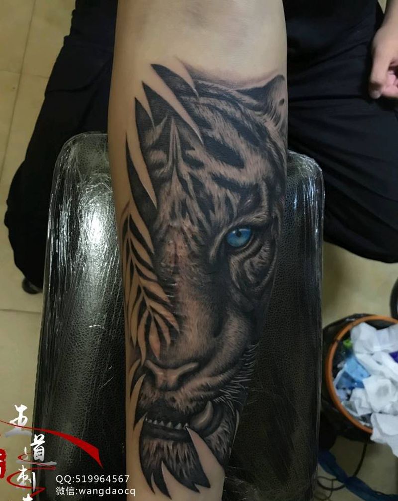 遮盖纹身图片_手部手臂欧美写实新传统遮盖老虎狮子纹身图案