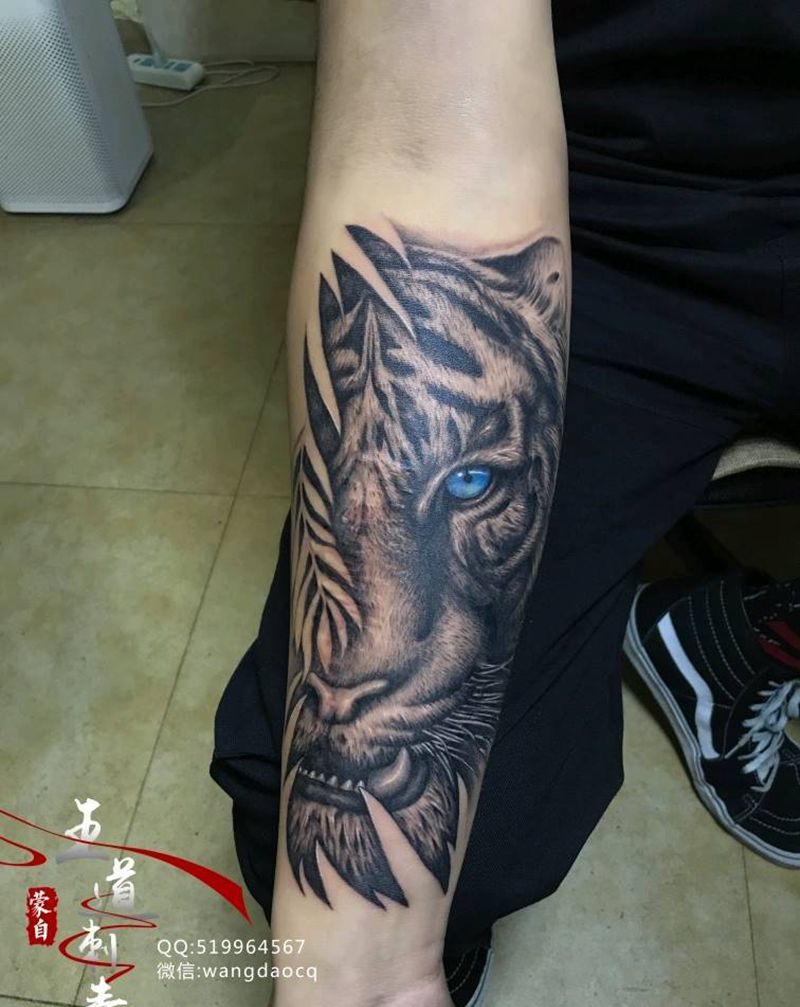 遮盖纹身图片_手部手臂欧美写实新传统遮盖老虎狮子纹身图案