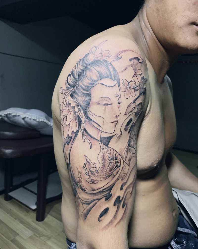 当前位置: 首页 >云南省红河哈尼族彝族自治州纹身店-舞墨轩刺青纹身图案>艺伎纹身图片_手臂老传统纹身图案