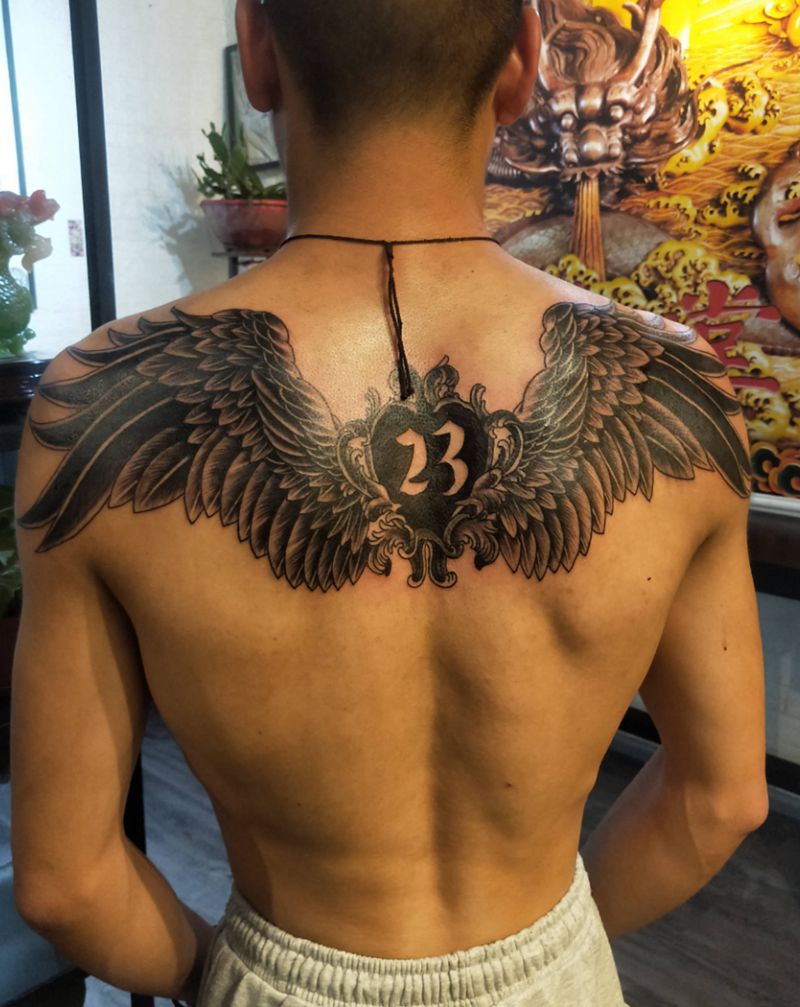 黑灰满背纹身图案