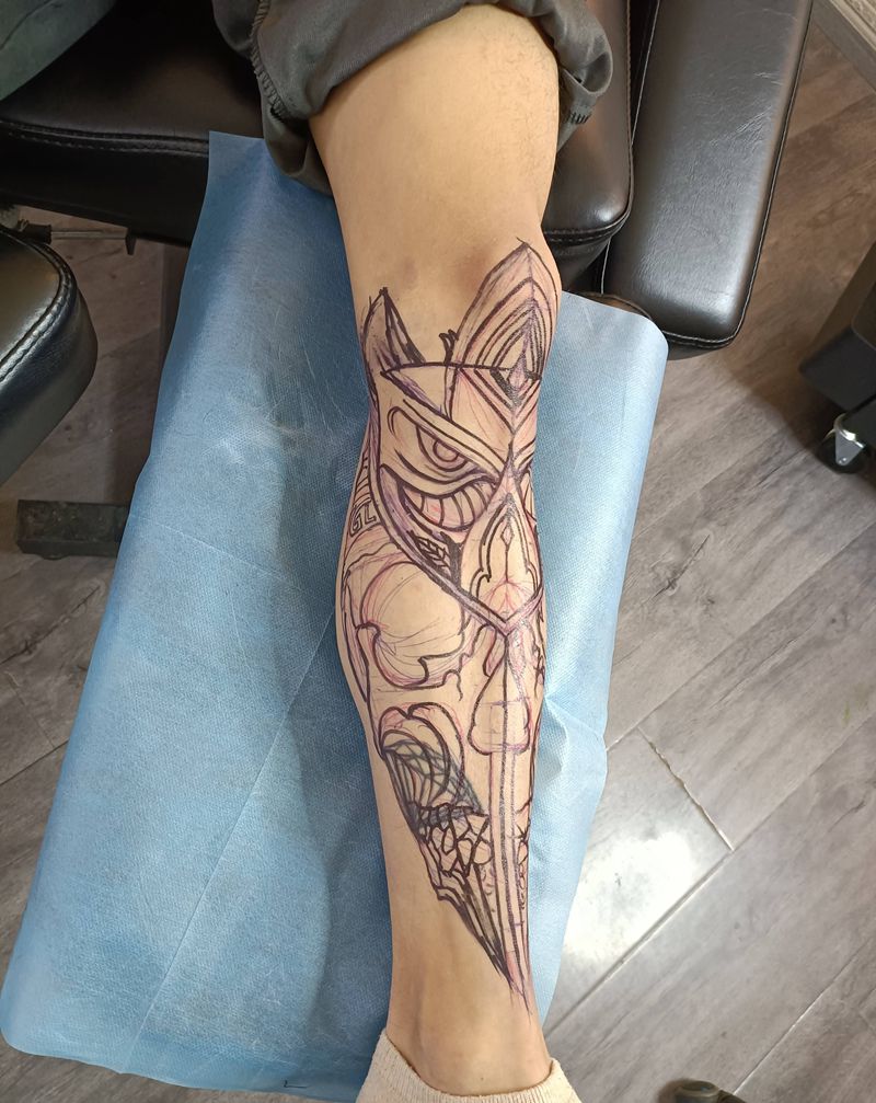 当前位置: 首页 >云南省文山苗族自治州纹身店-雕金堂纹身图案>暗黑纹身图片_腿部脚部点刺纹身图案