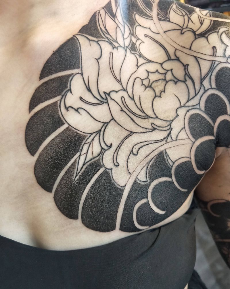 • 女性大花胸纹身_43张霸气漂亮的女性大花胸纹身图案作品