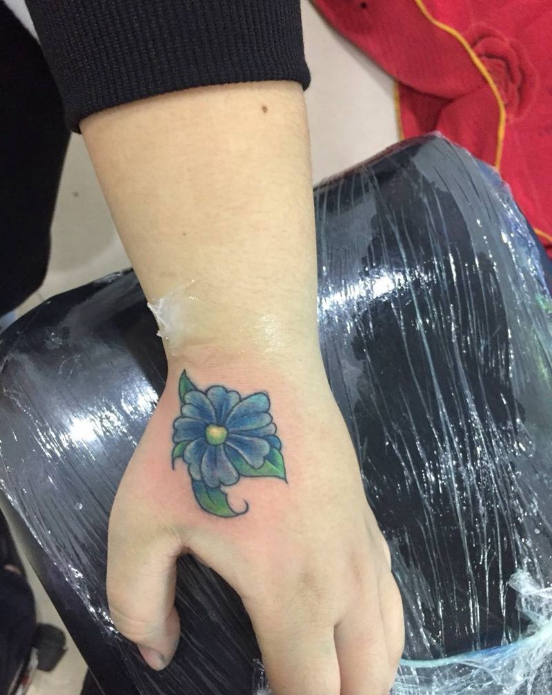 • 手背潮流时尚的玫瑰花眼睛纹身图案