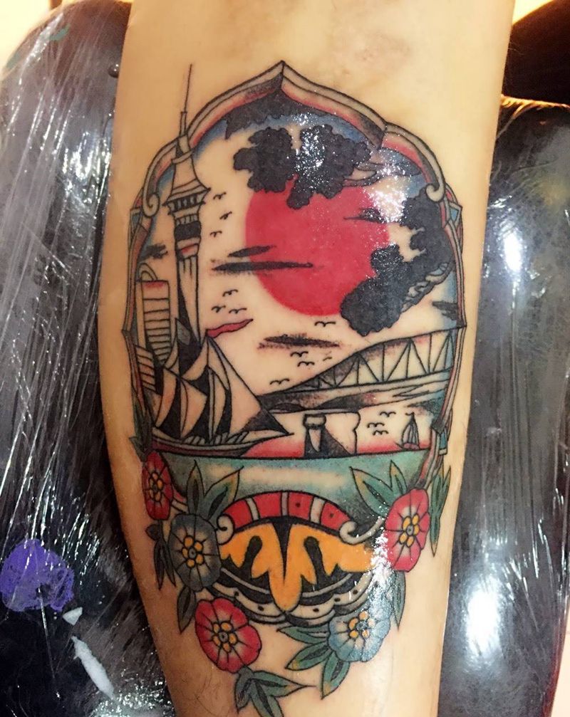• T网红王老大花腿龙纹身图片_腿部新传统纹身图案
