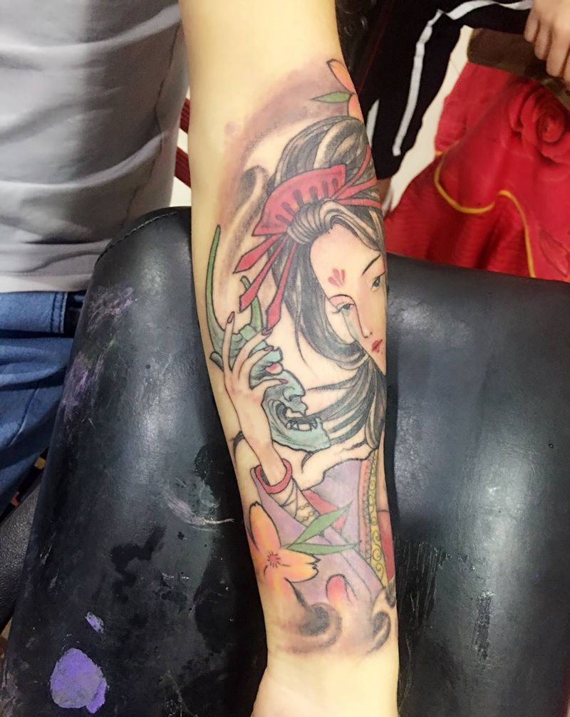当前位置: 首页 >云南省文山苗族自治州纹身店-雕金堂纹身图案>艺妓小臂纹身图片