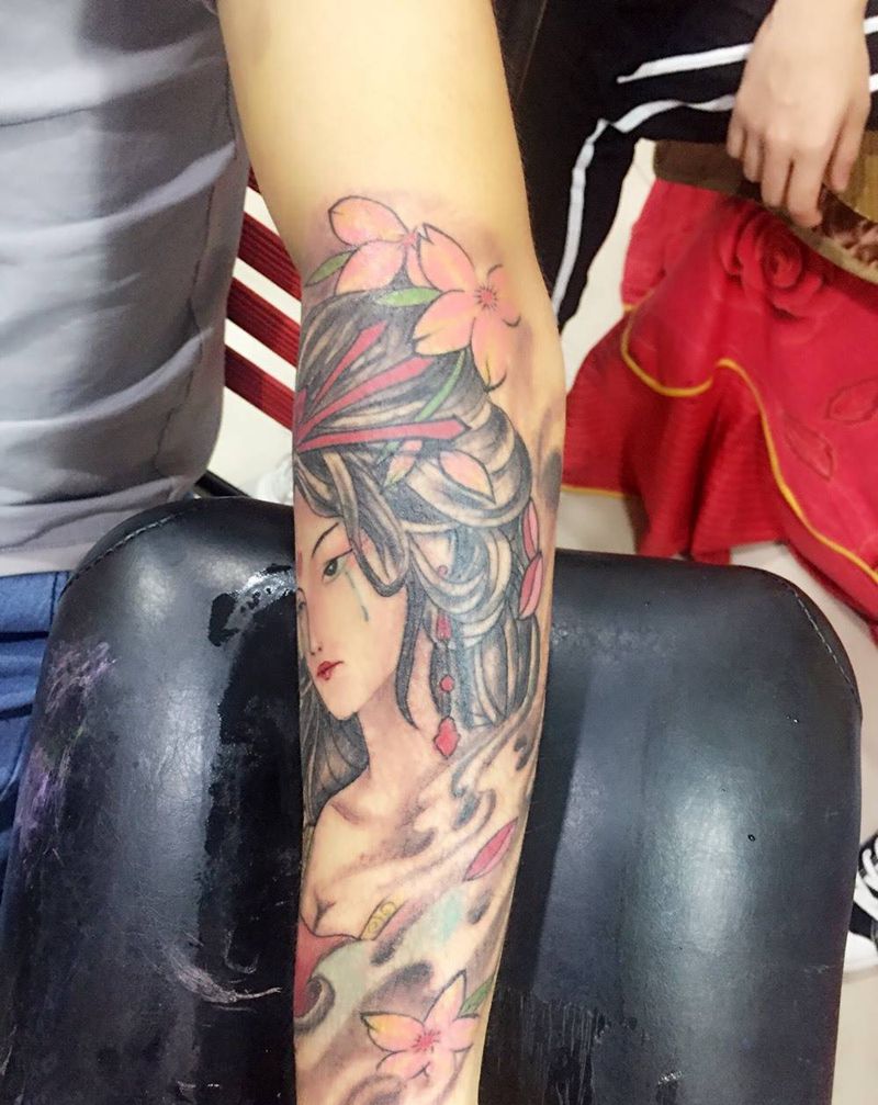 当前位置: 首页 >云南省文山苗族自治州纹身店-雕金堂纹身图案>艺妓小臂纹身图片