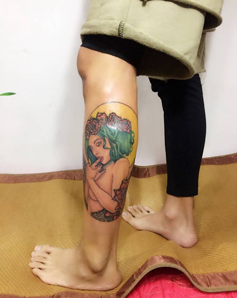 • T网红王老大花腿龙纹身图片_腿部新传统纹身图案