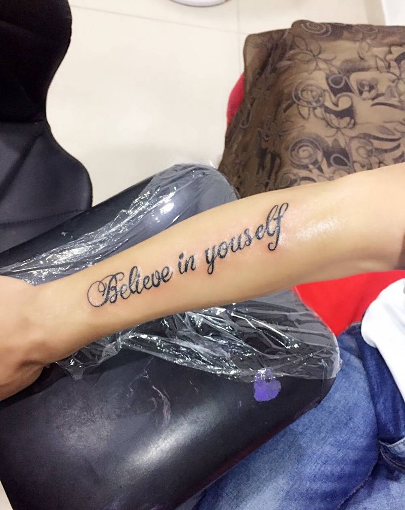 当前位置: 首页 >云南省文山苗族自治州纹身店-雕金堂纹身图案>英文字母!<相信自己>纹身图片