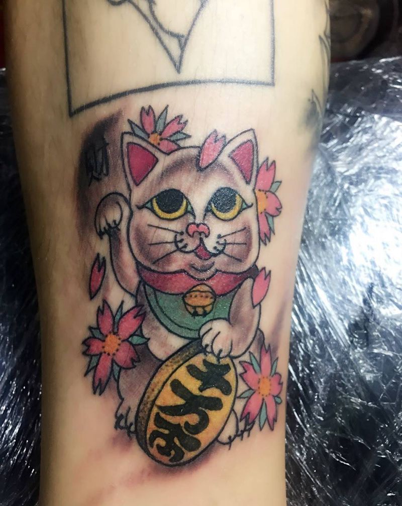 当前位置: 首页 >云南省文山苗族自治州纹身店-雕金堂纹身图案>招财猫纹身图片