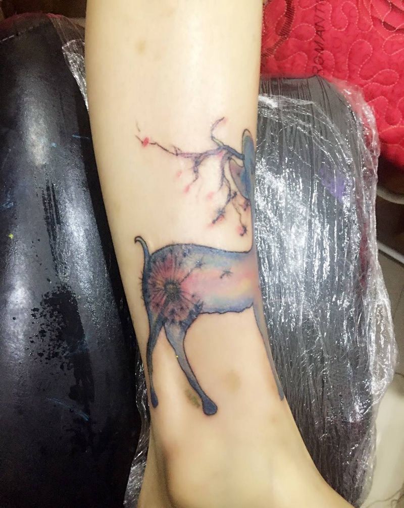 • T网红王老大花腿龙纹身图片_腿部新传统纹身图案