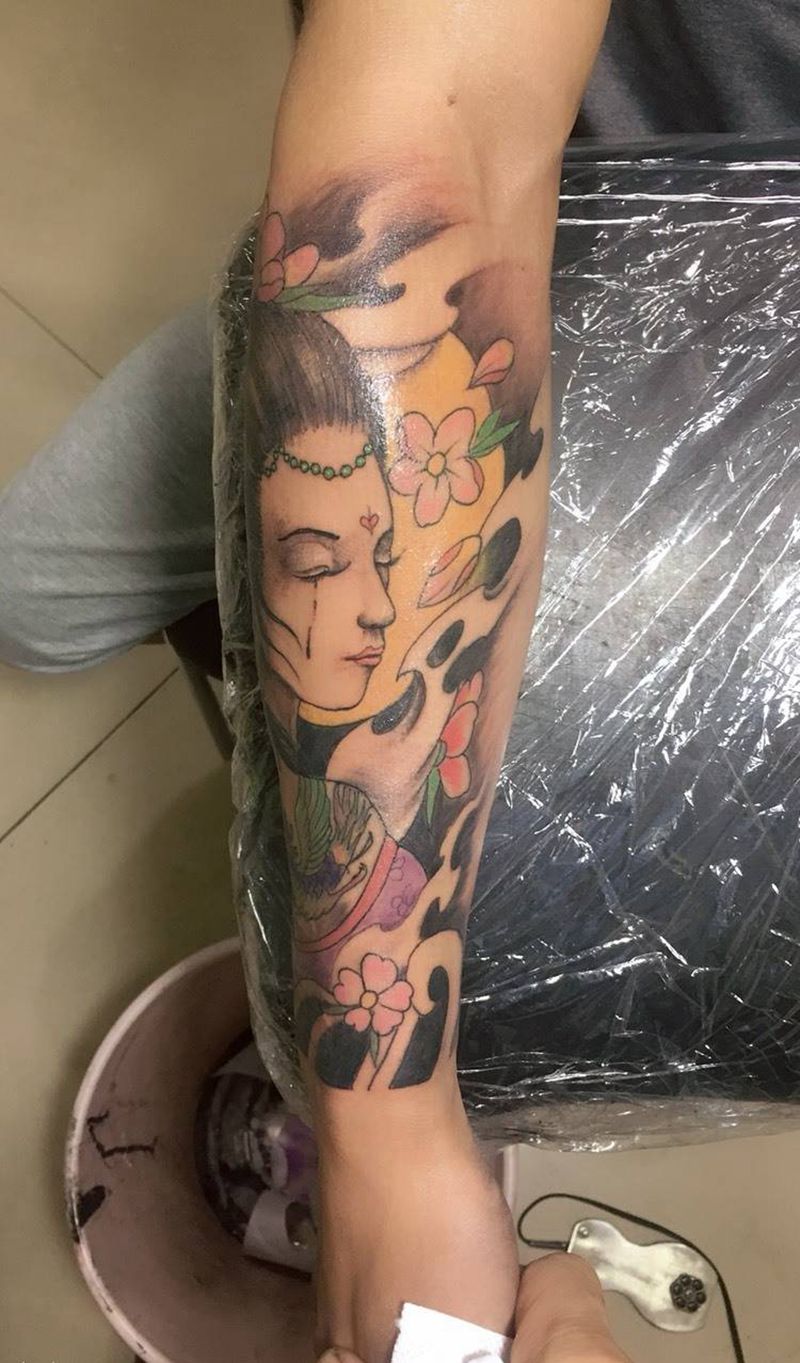 当前位置: 首页 >云南省文山苗族自治州纹身店-雕金堂纹身图案>《明月艺妓》手碗部位是遮盖疤痕不纹身图片