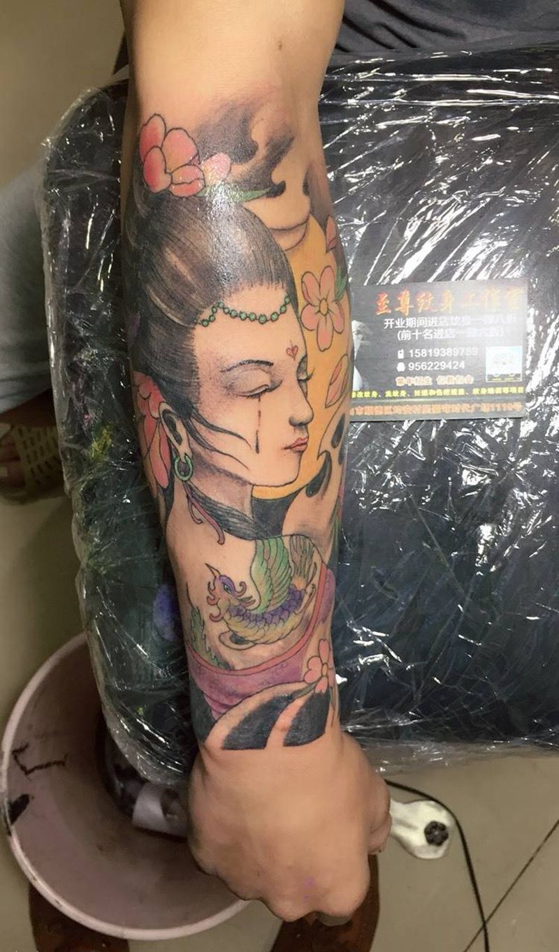 当前位置: 首页 >云南省文山苗族自治州纹身店-雕金堂纹身图案>《明月艺妓》手碗部位是遮盖疤痕不纹身图片
