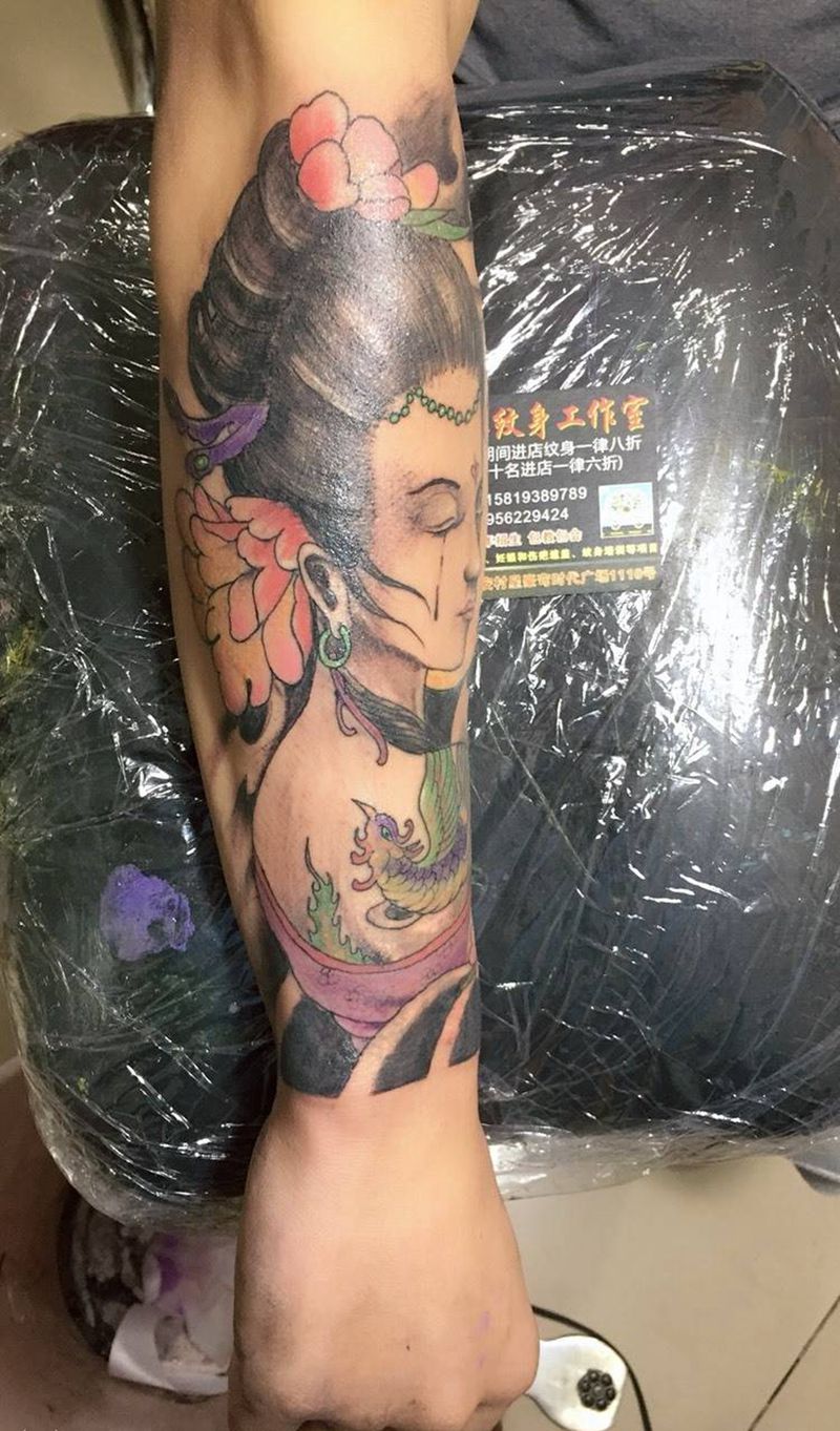 当前位置: 首页 >云南省文山苗族自治州纹身店-雕金堂纹身图案>《明月艺妓》手碗部位是遮盖疤痕不纹身图片