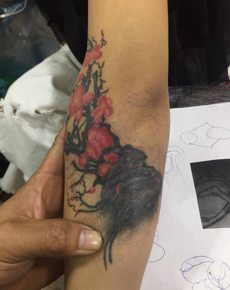 当前位置: 首页 >云南省文山苗族自治州纹身店-雕金堂纹身图案>暴力遮盖。纹身图片
