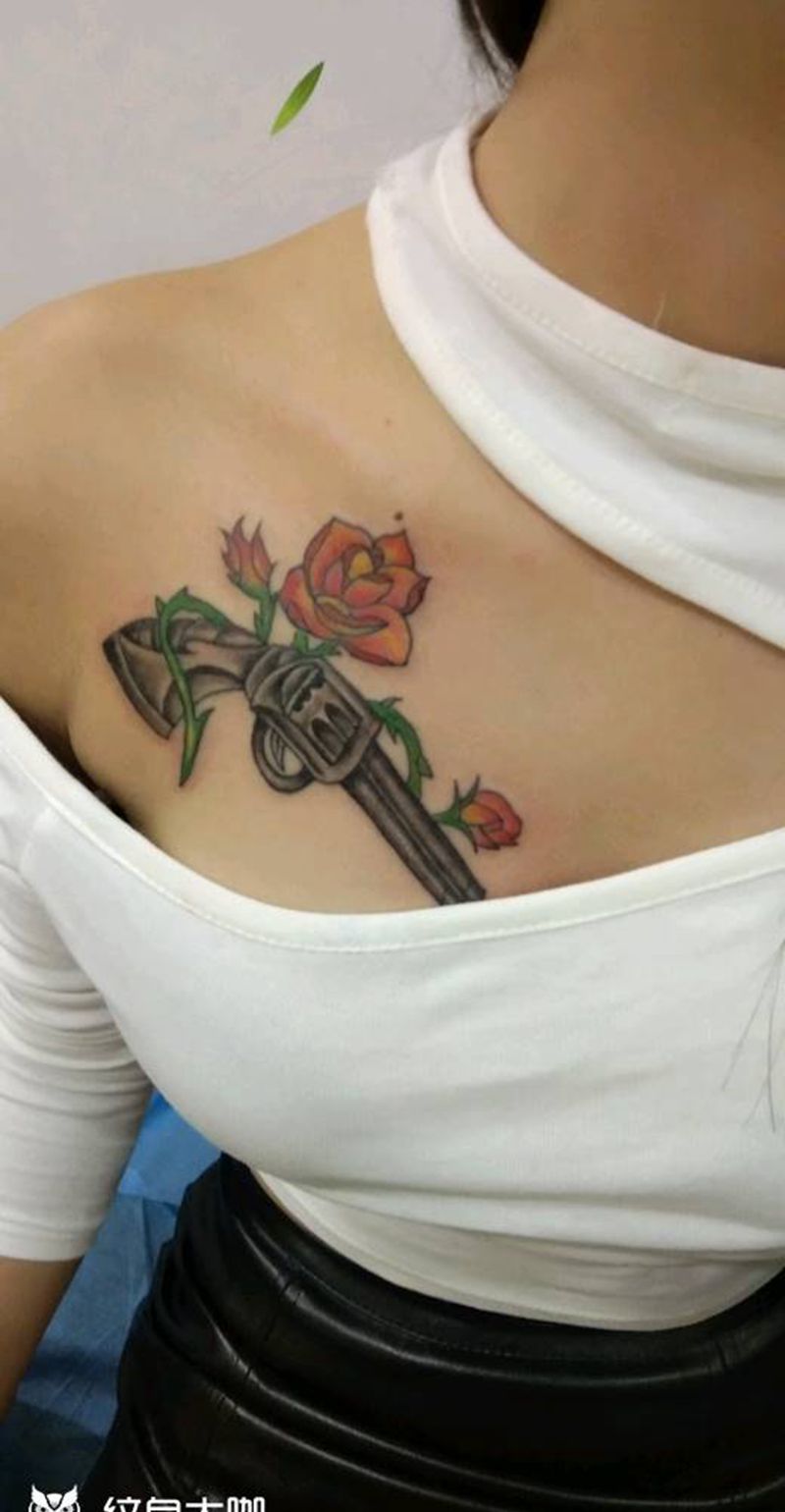 • 女性大花胸纹身_43张霸气漂亮的女性大花胸纹身图案作品