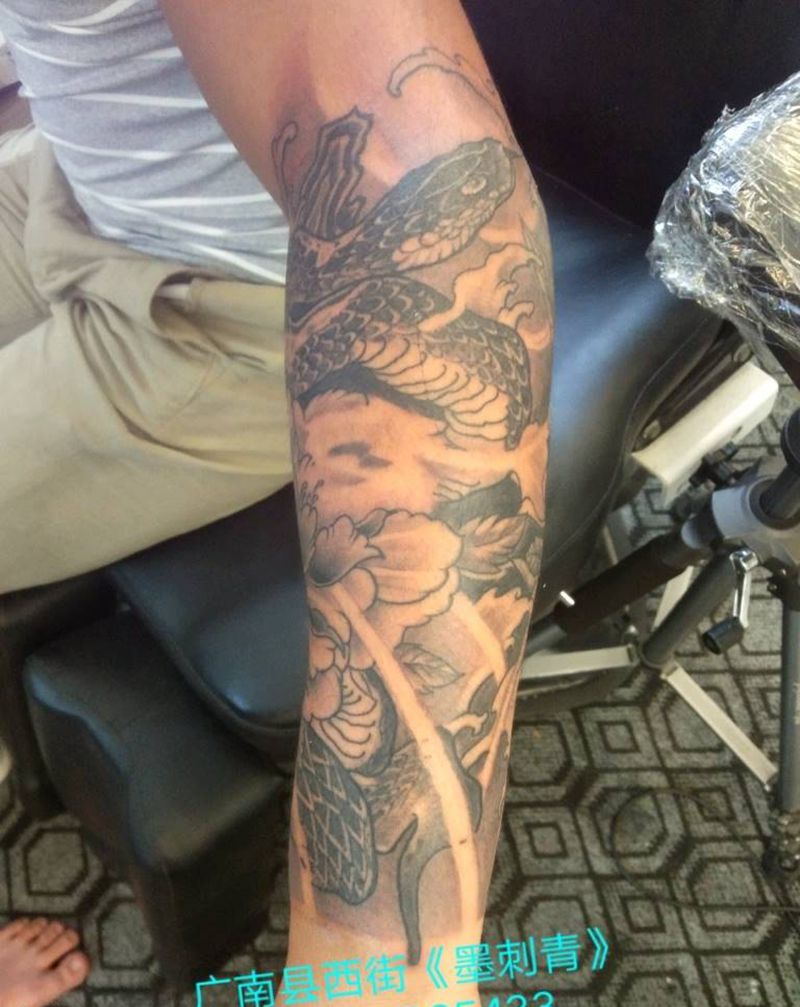 当前位置: 首页 >云南省文山苗族自治州纹身店-雕金堂纹身图案>蛇与牡丹花纹身图片_手臂新传统纹身图案