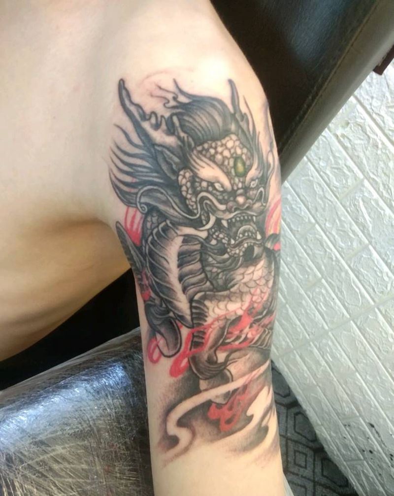• T网红王老大花腿龙纹身图片_腿部新传统纹身图案