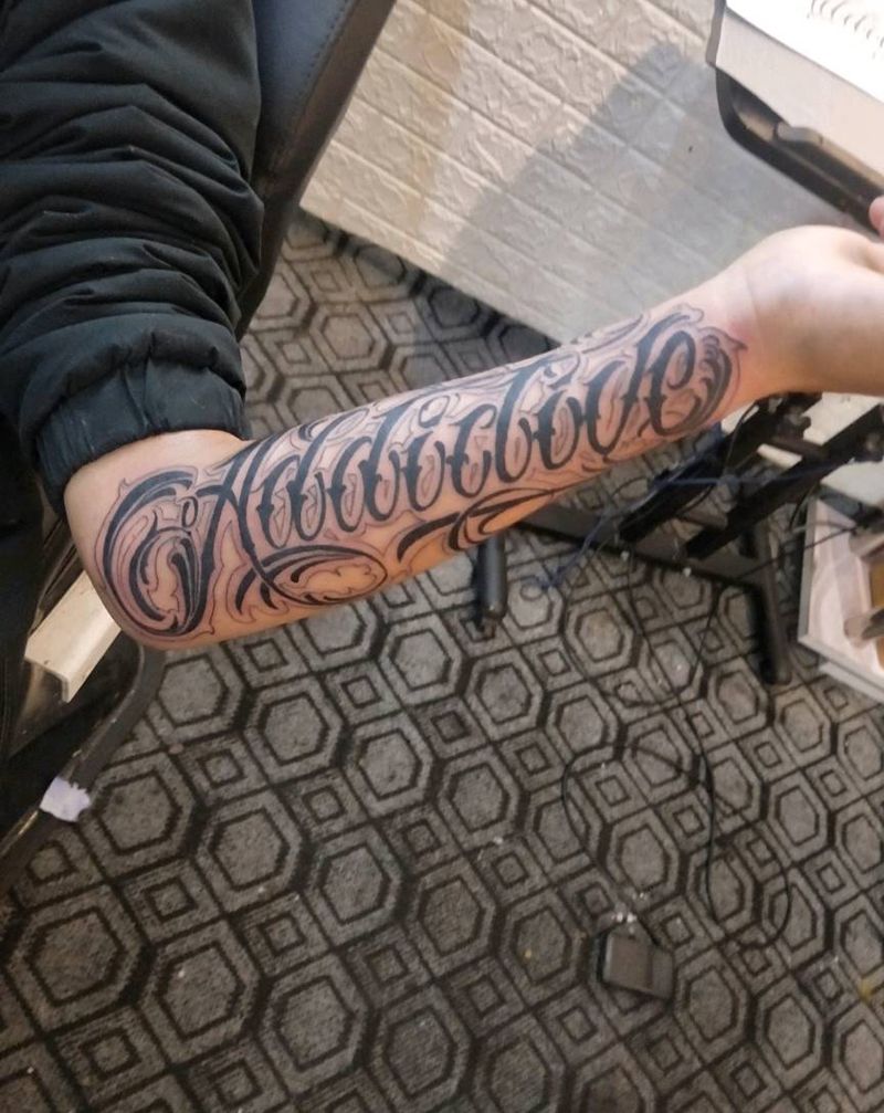 当前位置: 首页 >云南省文山苗族自治州纹身店-雕金堂纹身图案>英文花体字纹身图片_手部花体字纹身图案
