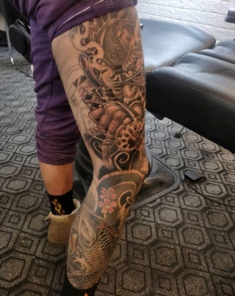 当前位置: 首页 >云南省文山苗族自治州纹身店-雕金堂纹身图案>花腿纹身图片_腿部新传统老传统纹身图案