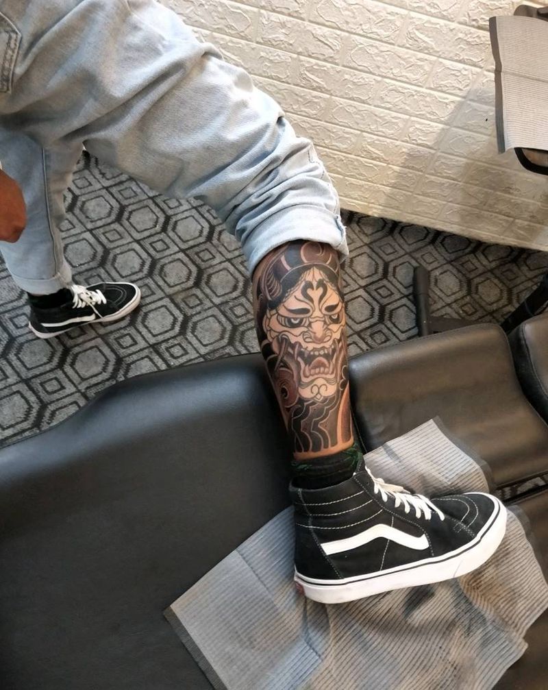 • T网红王老大花腿龙纹身图片_腿部新传统纹身图案