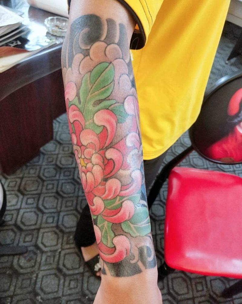 当前位置: 首页 >云南省文山苗族自治州纹身店-雕金堂纹身图案>菊花纹身图片_手臂老传统纹身图案