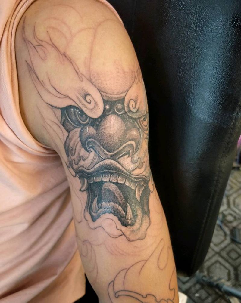 当前位置: 首页 >云南省文山苗族自治州纹身店-雕金堂纹身图案>唐狮纹身图片_手臂新传统纹身图案