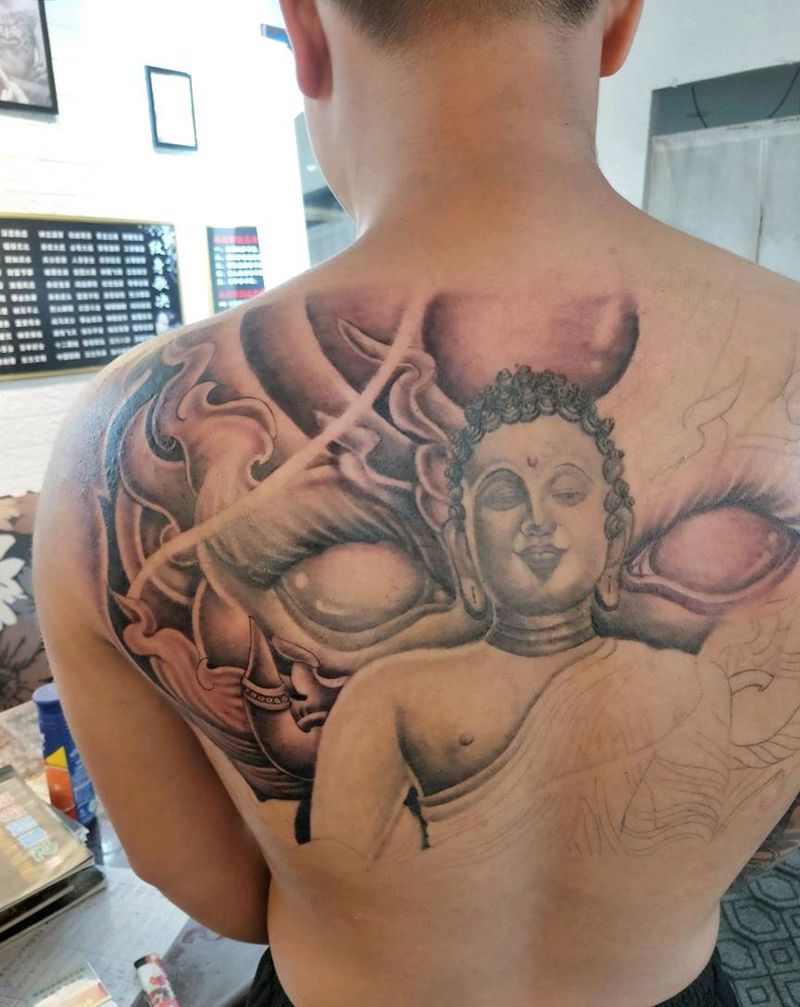 佛纹身图片_背部新传统纹身图案