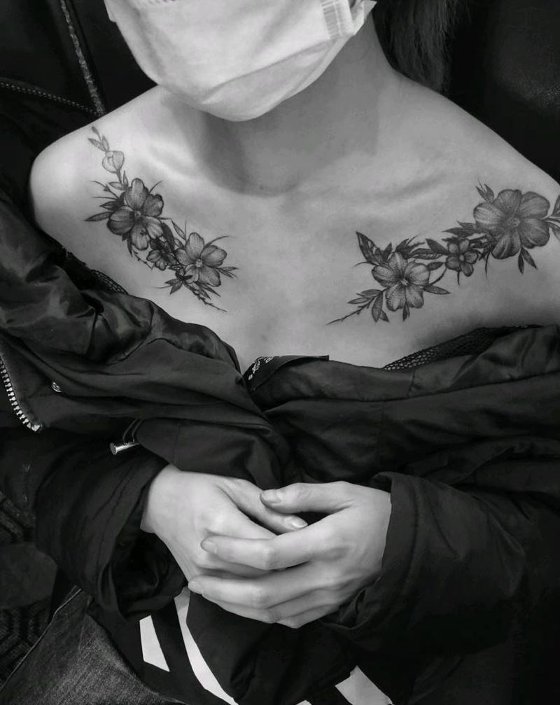• 女性大花胸纹身_43张霸气漂亮的女性大花胸纹身图案作品