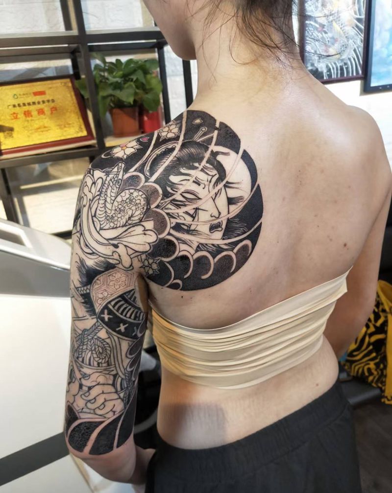 黑灰满背纹身图案