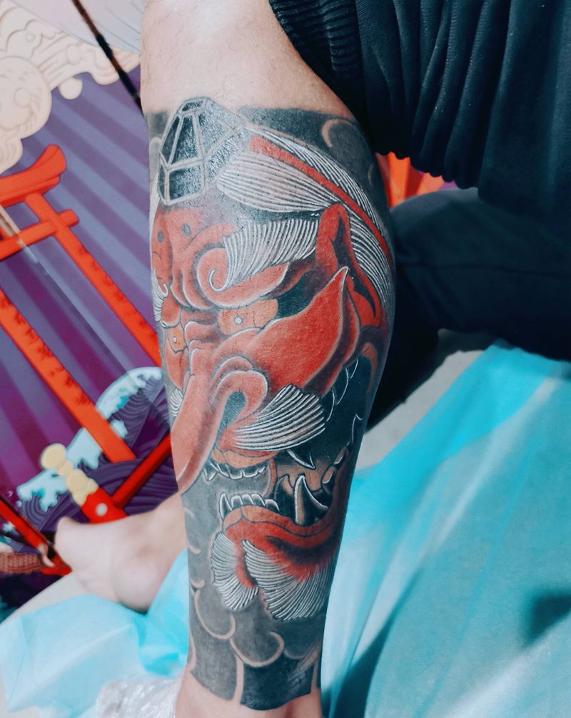 当前位置: 首页 >云南省红河哈尼族彝族自治州纹身店-刺痛刺青纹身图案>大天狗纹身图片_腿部老传统纹身图案