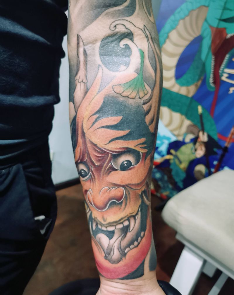 当前位置: 首页 >云南省红河哈尼族彝族自治州纹身店-刺痛刺青纹身图案>般若纹身图片_手臂新传统纹身图案
