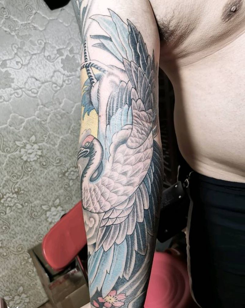 当前位置: 首页 >云南省红河哈尼族彝族自治州纹身店-刺痛刺青纹身图案>鹤纹身图片_手臂老传统纹身图案
