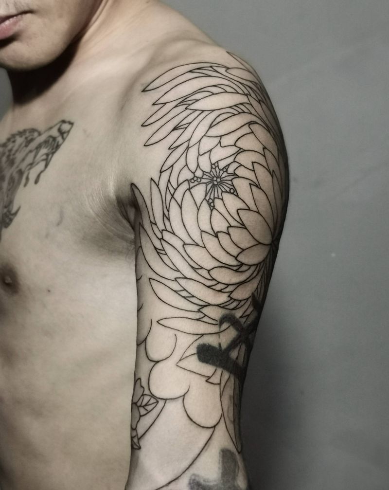 菊纹身图片_手臂老传统纹身图案