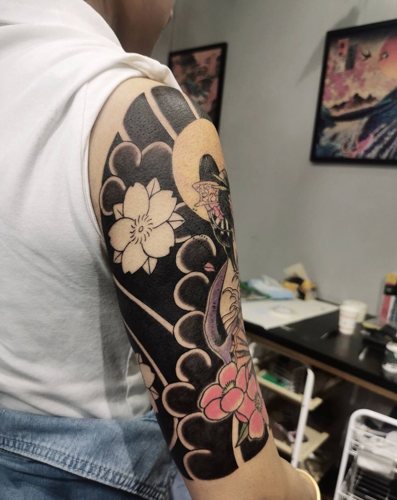 当前位置: 首页 >云南省红河哈尼族彝族自治州纹身店-刺痛刺青纹身图案>艺伎纹身图片_手臂老传统纹身图案