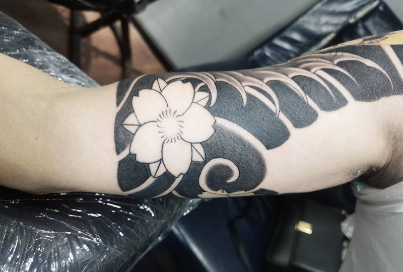 当前位置: 首页 >云南省红河哈尼族彝族自治州纹身店-刺痛刺青纹身图案>艺伎纹身图片_手臂老传统纹身图案