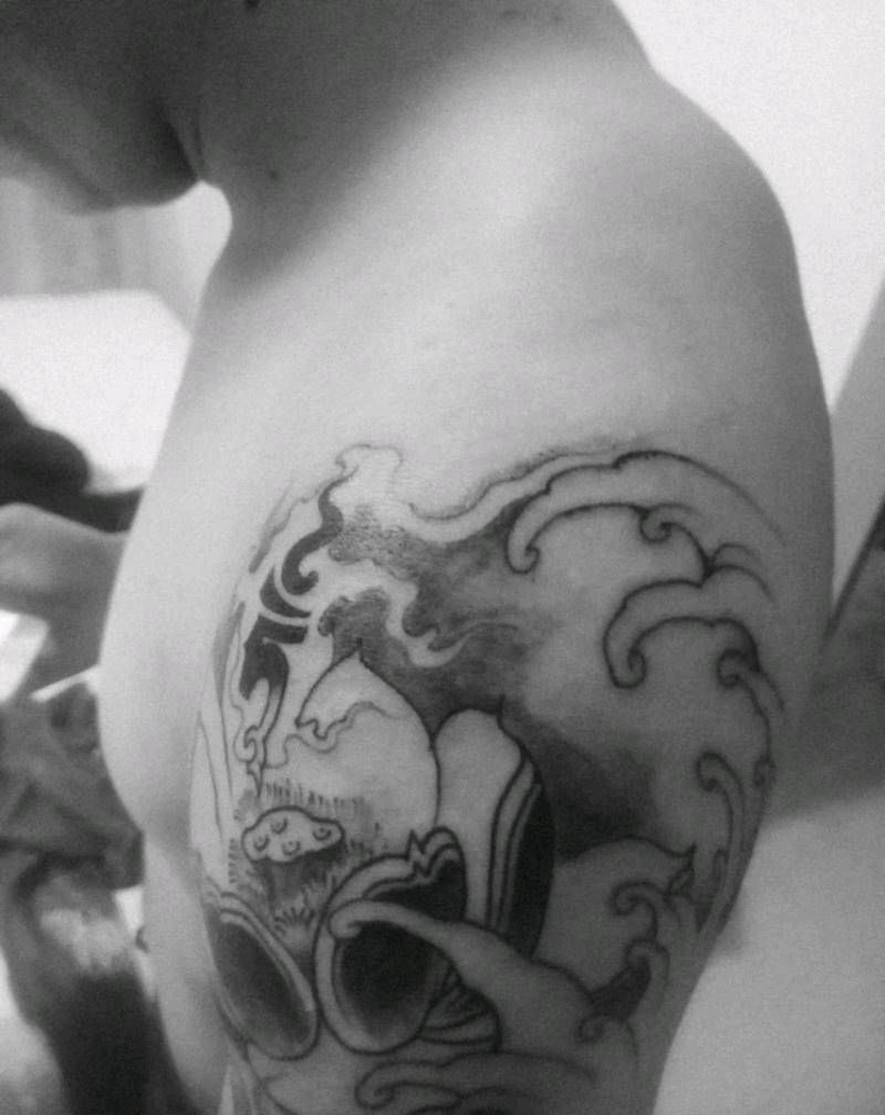 当前位置: 首页 >云南省红河哈尼族彝族自治州纹身店-刺痛刺青纹身图案>添加水浪 莲花纹身图片