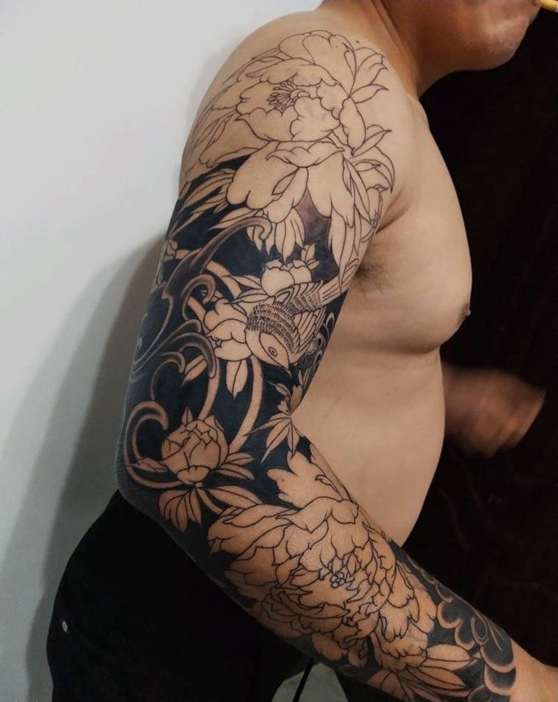 当前位置: 首页 >云南省红河哈尼族彝族自治州纹身店-刺痛刺青纹身图案>传统牡丹花臂纹身图片_手臂老传统牡丹花纹身图案