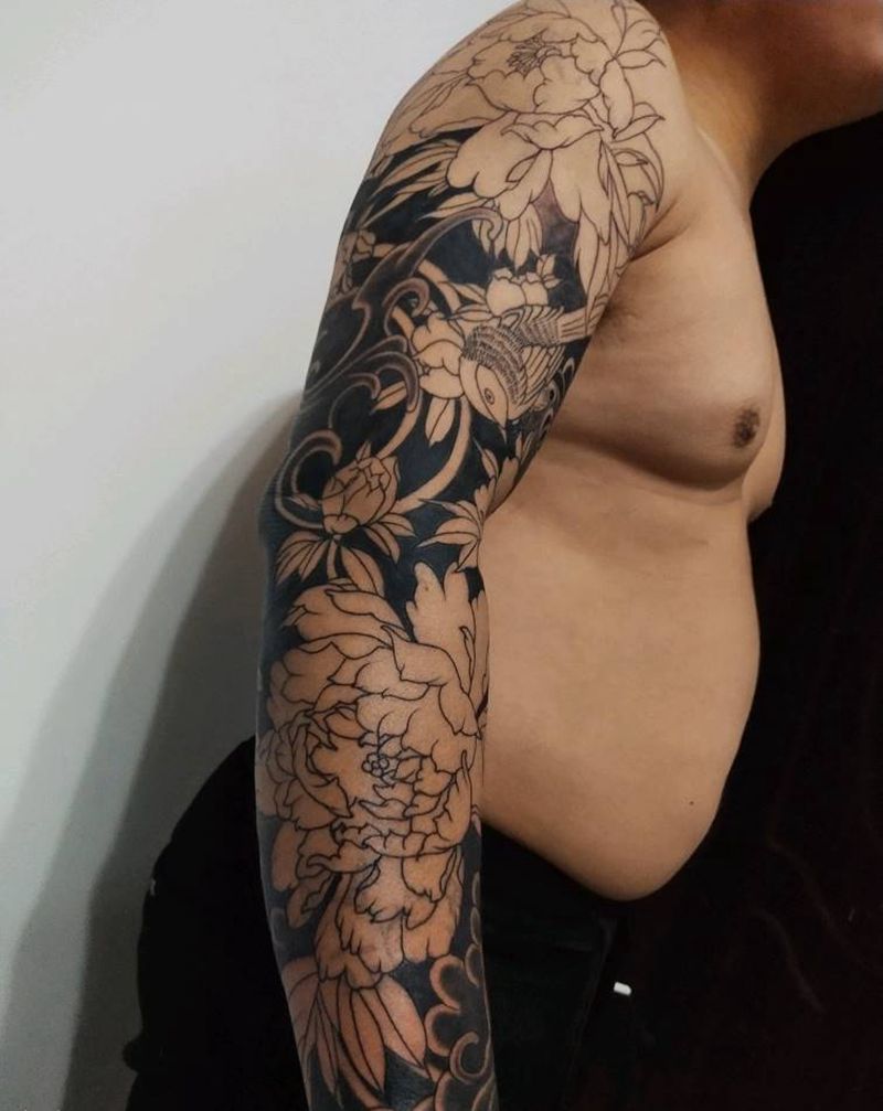 当前位置: 首页 >云南省红河哈尼族彝族自治州纹身店-刺痛刺青纹身图案>传统牡丹花臂纹身图片_手臂老传统牡丹花纹身图案
