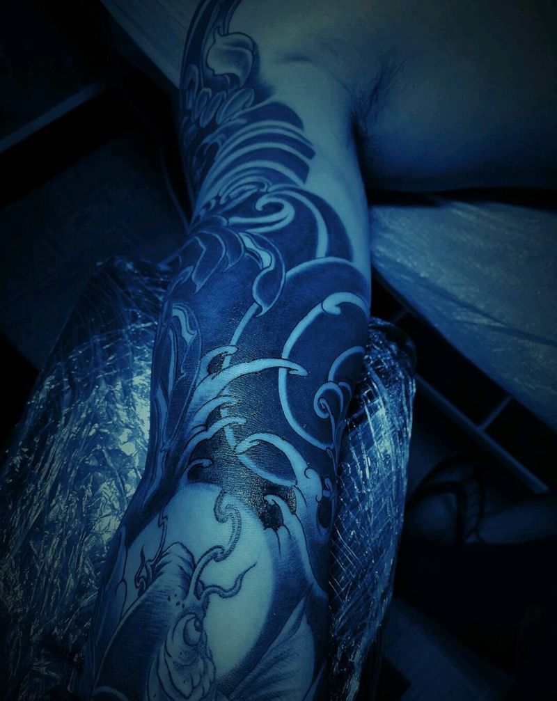 • T网红王老大花腿龙纹身图片_腿部新传统纹身图案