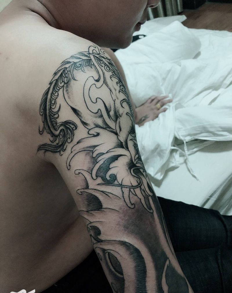 当前位置: 首页 >云南省红河哈尼族彝族自治州纹身店-刺痛刺青纹身图案>旧图修改添加花臂纹身图片