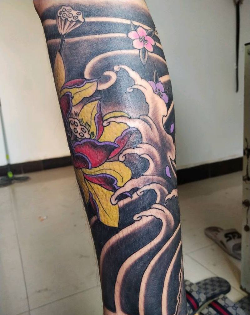 • T网红王老大花腿龙纹身图片_腿部新传统纹身图案